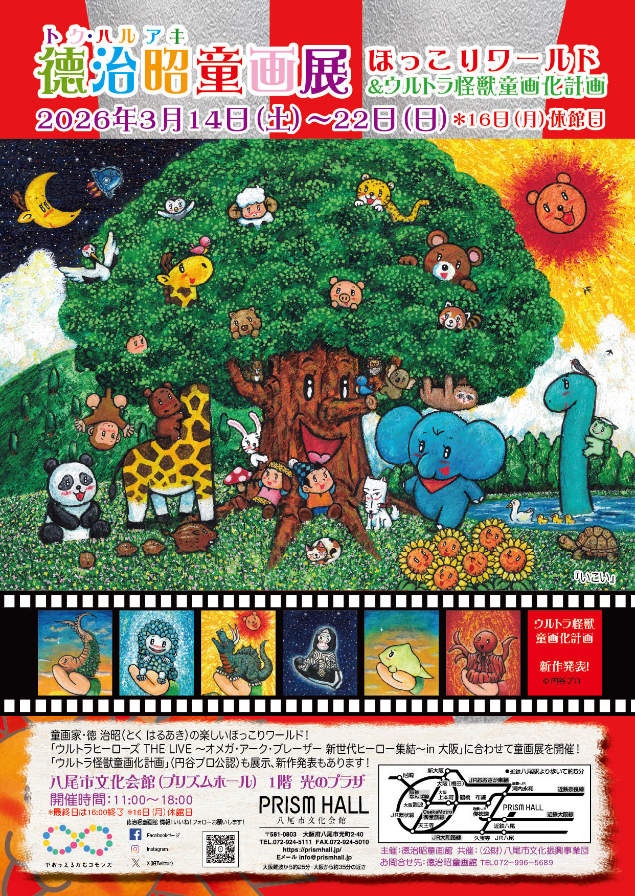 地元開催、おなじみ八尾プリズムホールでの開催です。同会館にて開催の『ウルトラヒーローズ THE LIVE〜オメガ・アーク・ブレーザー新世代ヒーロー集結〜 in 大阪』に合わせて開催します!。「ウルトラ怪獣童画化計画」の新作も含めて作品たちを楽しんで下さい!