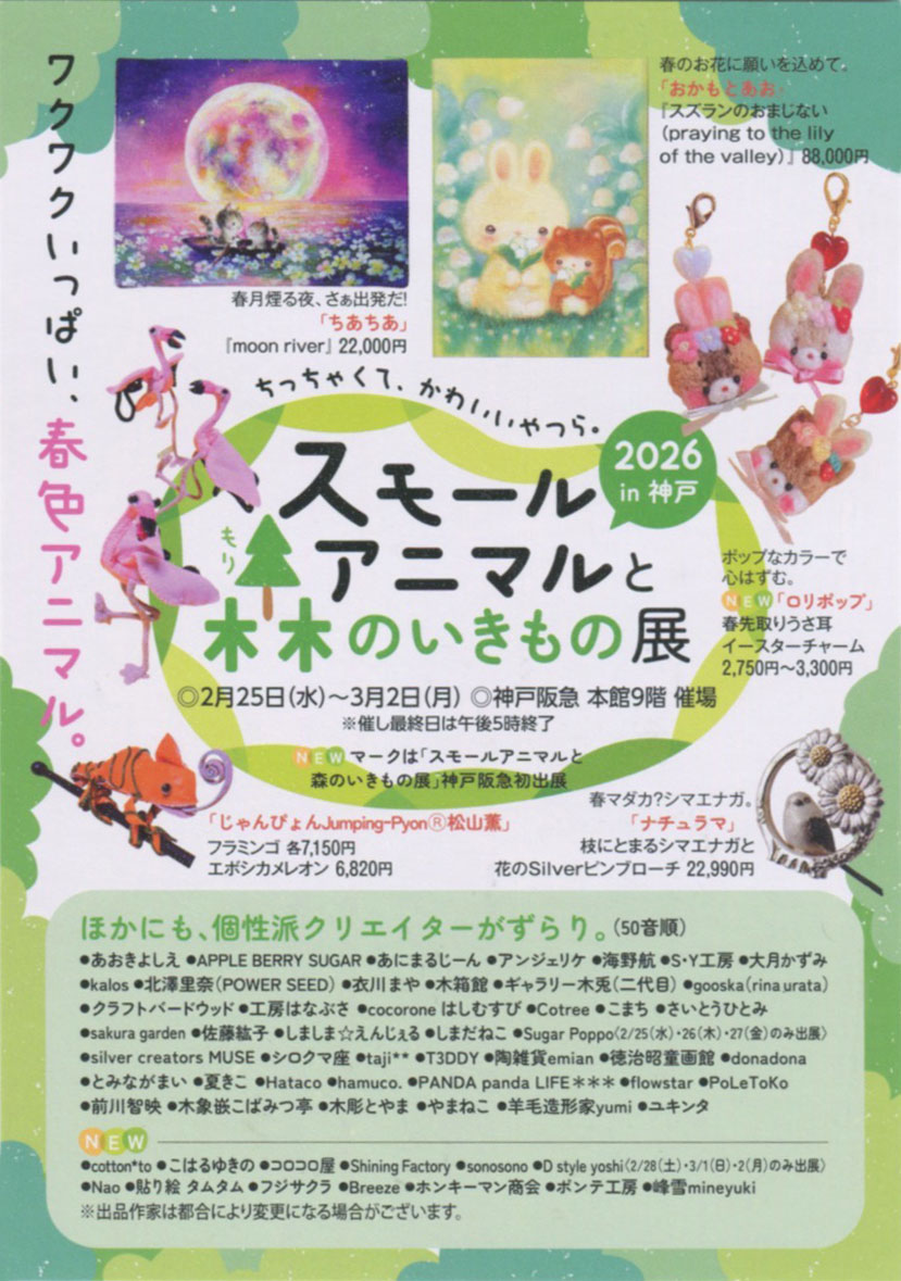 ●スモールアニマルと森のいきもの展 2026 in 神戸 2026年2日25日(水)〜3月2日(月)